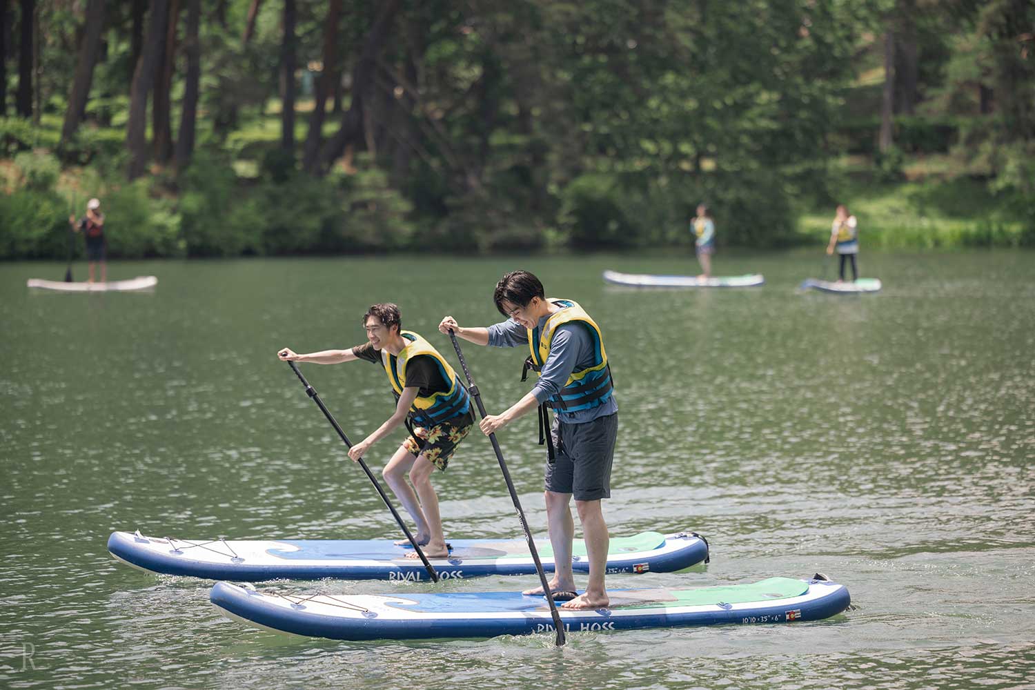 すぐそばの城ヶ池で行うSUP、夕食に出てくるニジマスを自分で釣ることができる釣り堀、自然豊かな林間エリアの散策などここでしか味わえないアクティビティ体験をご用意しております。