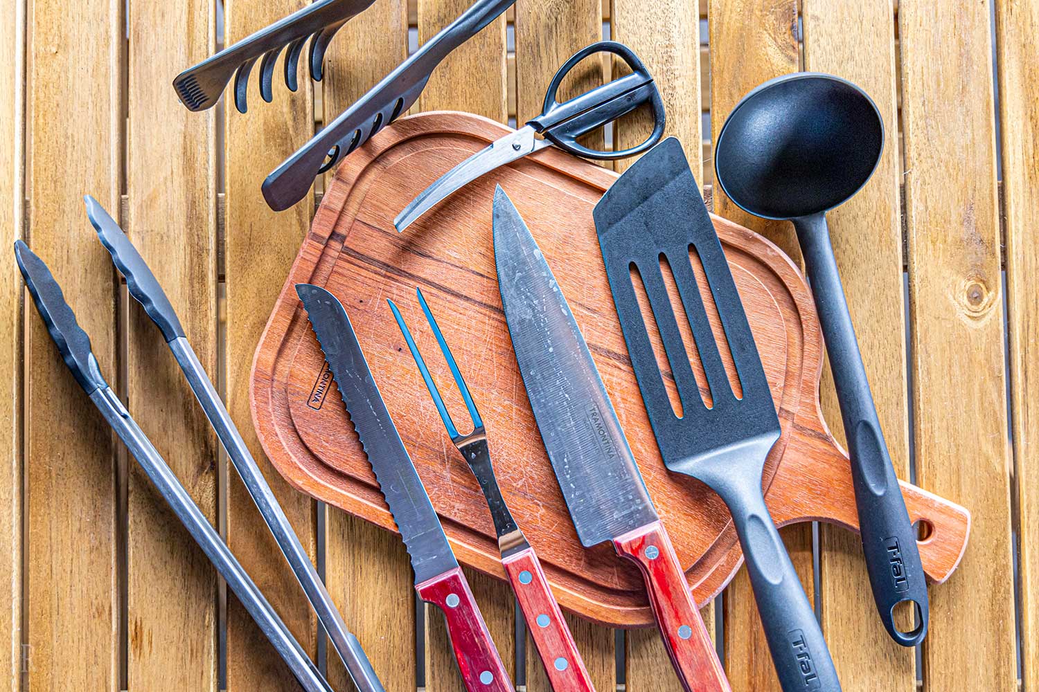 包丁、まな板、キッチンバサミ、トング、ミトン、アルミホイル、鍋敷き、軍手、ワインオープナー、チャッカマン、食器類(平皿、スープ皿、コップ、フォーク、スプーン、お箸)をご用意しております。